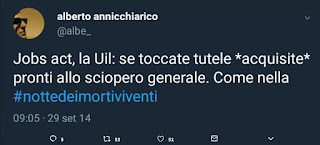 Ci vorrebbe, in effetti, un po’ più di dignità, o almeno di coerenza. Meglio: ci vorrebbe una vera solidarietà di classe, quella che forse riuscirebbe a far capire anche a questa gente, che nel 2017 ancora ragiona in un modo che a noi sembrava caricaturale già tre anni or sono, che in un paese in recessione nessun taglio di redditi è giustificato, e che a fronte di un attacco indiscriminato e massiccio ai diritti dei lavoratori ogni sciopero tutela tutti gli altri.